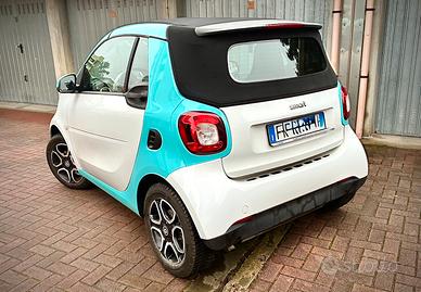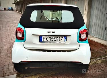 Vendo Smart Cabrio 900 cc turbo Youngster Twin, maggio 2017, colore bianco/celeste, unico nel suo genere. Km 32000, guarnizioni sportelli nuove, radio, bluetooth, sensori parcheggio, cruise control, pneumatici invernali ed estivi 4+4, sempre tenuta in box, secondo proprietario, revisione maggio 2027, tagliandi eseguiti ogni anno, capote integra e funzionante. Interni di colore nero, igienizzati e sanificati. Mai fumato nell’abitacolo. Meccanica perfetta. Ottima per rappresentanza, pubblicità ecc. Grande agilità e bellissima nella bella stagione. Se veramente interessati si prega di fare proposte ragionevoli.