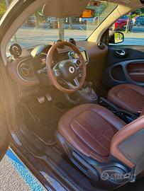 Smart cabrio brabus tailor made 90 cv turbo ,ne esistono pochissimi esemplari cosi , ne anno prodotte solo 200 , colorazione esterna cellula Coffee Lounge , il resto in gigio opaco , interni in pelle Nappa colore Brown totale sia volante cruscotto che portiere , con cuciture a vista e marchio Brabus inciso sul poggia testa , luci diffuse interne sui poggiapiedi , sulla consol centrale che sulle tasche sportelli , nvigatore , tooch , volante multi finzione con cambio al volante , orologio e contagiri , telecamera posteriore ,dispositivo anticollisione , capote elettrica anche con telecomando sulla chiave , poi molti altri accessori che non ricordo tutti . Vettura mai stata incidentata , km originali , interni perfetti , carrozzeria perfetta , gomme montate nuove da poco .