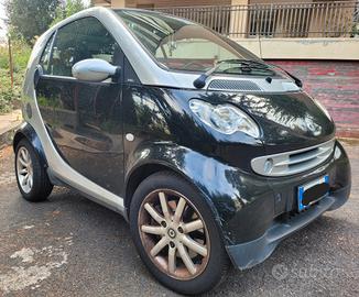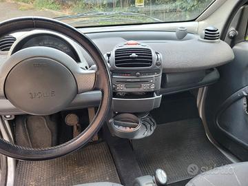 Smart for two 700 coupé pulse (45kW) Anno 10/2005 Benzina 95.814 km Autovettura in ottime condizioni, presenta qualche graffio sulla carrozzeria come si vede in foto Revisionata Bollo pagato a settembre Doppia chiave Cambio automatico Sostituite molle lunotto posteriore Ruote nuove Autoradio con lettore CD e 6 cassetti porta CD Servosterzo Vetri elettrici Chiusura centralizzata ABS Aria condizionata Tettuccio con vetro panoramico