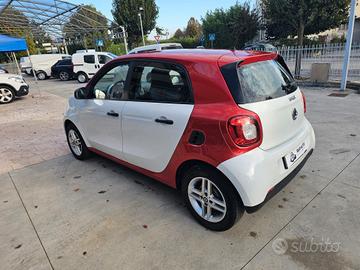 Ti presento una Smart ForFour modello 1.0, un'auto compatta e versatile perfetta per la città grazie alle sue dimensioni contenute e alla facilità di parcheggio. Questa berlina a 5 porte con carrozzeria di colore bianco e rosso metallizzato, interna con tessuti neri, offre quattro comodi posti e si caratterizza per un design moderno ed elegante.