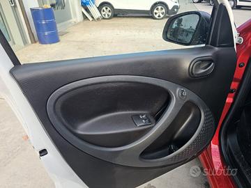 Ti presento una Smart ForFour modello 1.0, un'auto compatta e versatile perfetta per la città grazie alle sue dimensioni contenute e alla facilità di parcheggio. Questa berlina a 5 porte con carrozzeria di colore bianco e rosso metallizzato, interna con tessuti neri, offre quattro comodi posti e si caratterizza per un design moderno ed elegante.