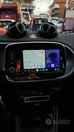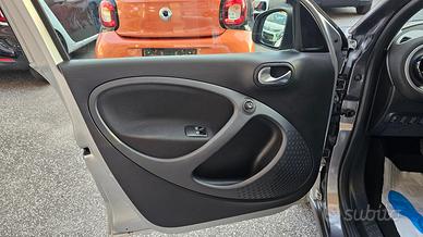 Smart Forfour 90 0.9 Turbo Twinamic Passion con chilometraggio certificato (17.410km immatricolata 01/2019) da tagliandi annuali ufficiali riscontrabili su libro service Smart, uniproprietario, condizioni reali perfette. E' equipaggiata con i seguenti accessori: allestimento Passion, cambio automatico e sequenziale a doppia frizione Twinamic con funzione Eco e Sport, carrozzeria e mascherina anteriore color argento metallizzato con tridion e specchi grigio scuro metallizzato, doppio tetto panoramico con tendine oscuranti, sensori di parcheggio posteriori, pacchetto Led&Sensor con luci diurne anteriori Led a 'U' fendinebbia fari posteriori led e sensore pioggia/luci, cerchi in lega da 15 bicolore satinati/neri gommati con pneumatici M+S, volante in pelle multifunzione, cruise control e limitatore di velocità, sedili anteriori riscaldabili, bracciolo centrale anteriore originale, schienale sedili posteriori sdoppiato e ribaltabile, pacchetto Comfort con sedile di guida e volante regolabili in altezza, specchietti laterali elettrici, pacchetto luci esterne, start&stop disinseribile, autoradio navigatore monitor touchscreen Cool & Media con connettività completa smartphone bluetooth ingresso usb sd card e aux Android Auto, climatizzatore automatico, portaocchiali.