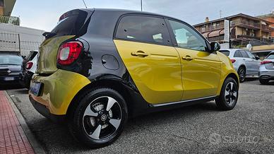 Smart Forfour 90 0.9 Turbo Twinamic Passion con chilometraggio certificato (36.697km immatricolata 11/2019) da tagliandi annuali ufficiali riscontrabili su libro service Smart, condizioni reali perfette. E' equipaggiata con i seguenti accessori: allestimento Passion, cambio automatico e sequenziale a doppia frizione Twinamic con funzione Eco e Sport, carrozzeria color oro metallizzato con tridion specchi e mascherina anteriore neri, doppio tetto panoramico con tendine oscuranti, sensori di parcheggio posteriori, retrocamera, pacchetto Led&Sensor con luci diurne anteriori Led a 'U' fendinebbia fari posteriori led e sensore pioggia/luci, cerchi in lega da 15 bicolore satinati/neri gommati con pneumatici 4 stagioni, volante in pelle multifunzione, cruise control e limitatore di velocità, sedili anteriori riscaldabili, schienale e sedute posteriori sdoppiate ribaltabili con portaoggetti centrale rimovibile, pacchetto Comfort con sedile di guida e volante regolabili in altezza, specchietti laterali elettrici, orologio e contagiri supplementari, frenata automatica d'emergenza, pacchetto luci esterne e interne, start&stop disinseribile, autoradio navigatore monitor touchscreen Cool & Media con connettività completa smartphone bluetooth ingresso usb sd card e aux Android Auto, climatizzatore automatico, vetri posteriori oscurati originali. Garanzia 12 mesi inclusa, passaggio di proprietà escluso. Prezzo € 14.990 valido in caso di applicazione della formula finanziamento ALL IN (rate da 60 72 84 mesi, assicurazione sul credito,assicurazione furto incendio atti vandalici calamità naturali cristalli per 2 anni con valore a nuovo). Prezzo € 15.490 valido in caso di applicazione della formula finanziamento LIGHT (finanziamento minimo € 10.000, rate da 48 fino a 84 mesi). Prezzo senza finanziamento € 15.990 con formula CASH. La Miami Auto Srls offre possibilità di finanziamento personalizzato in sede, leasing a ditte individuali, società e privati. Con noi, inoltre, puoi dare i