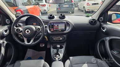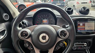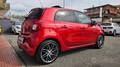 Smart Forfour Brabus Xclusive 0.9 Turbo Twinamic 109cv con chilometraggio certificato (29.699 km immatricolata 08/2018) da tutte le manutenzioni eseguite e riscontrabili in casa madre/Carvertical, uniproprietario. Disponibile in autosalone realmente. E' equipaggiata con i seguenti accessori: tetto apribile/cappotta ad apertura completamente elettrica, cambio automatico e sequenziale a doppia frizione Twinamic con funzione Eco e Sport, carrozzeria rosso bordeaux metallizzato/perla con tridion e mascherina anteriore in tinta, pacchetto Led&Sensor con luci diurne anteriori Led a 'U' fendinebbia fari posteriori led e sensore pioggia/luci, cerchi in lega da 17 Brabus bicolore satinati/grigi, doppio scarico posteriore Brabus, retrocamera, sensori di parcheggio posteriori, volante in pelle sportivo Brabus con cuciture a contrasto e paddels per cambio marcia, cruise control e limitatore di velocità, sedili in pelle sportivi Brabus Xclusive con anteriori riscaldabili, sedili posteriori ribaltabili con divisorio centrale rimovibile, cruscotto in pelle, pacchetto Comfort con sedile di guida e volante regolabili in altezza, specchietti laterali elettrici, bracciolo centrale anteriore originale, pedaliera sportiva, tappetini originali in velluto, pacchetto luci esterne e interne, start&stop disinseribile, avvisatore acustico frenata d'emergenza e cambio corsia accidentale, orologio e contagiri supplementari, autoradio navigatore monitor touchscreen Cool & Media con connettività completa smartphone bluetooth ingresso usb sd card e aux, sistema HI-FI JBL con subwoofer nel bagagliaio, vetri posteriori oscurati originali, climatizzatore automatico, portaocchiali, fascia elastica anteriore contieni bagagli. Garanzia 12 mesi inclusa, passaggio di proprietà escluso. Prezzo € 20.990 valido in caso di applicazione della formula finanziamento ALL IN ( rate da 60 72 84 mesi, assicurazione sul credito,assicurazione furto incendio atti vandalici calamità naturali cristalli per 2 anni e valor