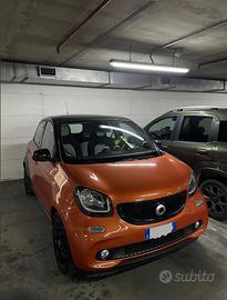 Smart forfour, anno 2016, bicolore arancione/nero, cambio automatico, km 78.000 reali, cerchi in lega, cambio gomme aprile 2025, controllo comandi al volante, tagliandata recentemente, doppio tetto panoramico, ottime condizioni, sempre tenuta in garage, revisionata a Febbraio 2025, adatta anche ai neopatentati
