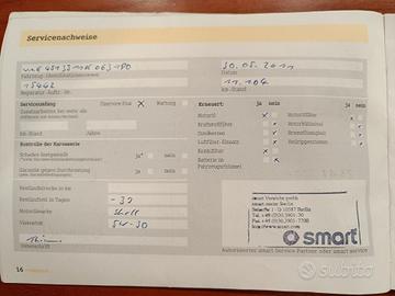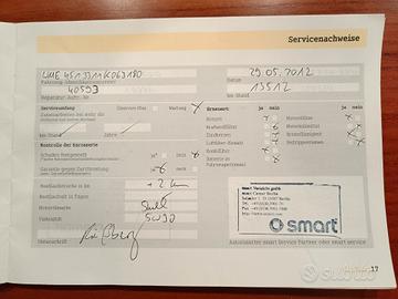 Aperti a qualsiasi controllo e verifica. Siamo fieri di esibire libro service curato Smart Mercedes Benz.