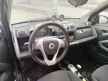 Come da titolo si propone in vendita Smart For Two 1000CC 52 kw alimentazione benzina, modello 451 immatricolata a Giugno 2008 nelle condizioni di seguito descritte: Carrozzeria: Originale in ogni particolare mai incidentata o riverniciata, presenta graffi superficiali da utilizzo in circuito urbano su entrambi i paraurti, le plastiche non presentano comunque alcun segno di rottura. Interni: in buono stato, normale usura del tempo e della percorrenza del veicolo. Motore/ciclistica: Motore in perfetto stato di funzionamento nonostante i suoi 213000km, cambio automatico perfettamente funzionante e frizione elettronica in normali condizioni di utilizzo, pneumatici nuovi. I tagliandi sono stati effettuati in maniera regolarissima e puntuale, il veicolo è attualmente usato quotidianamente e non presenta alcuna anomalia di affidabilità. Accessori di serie: Aria condizionata, chiusura centralizzata radiocomandata, ABS con ESP, tetto in cristallo, fari fendinebbia, palette del cambio automatico sul volante. Accessori aggiuntivi: Vetri oscurati e autoradio Alpine di alta gamma anche se datata, con ingresso USB. Anomalie attualmente riscontrate: Spia gialla triangolo dovuta ad sensore del volante che non pregiudica il funzionamento del veicolo, ma in merito al quale si consiglia controllo. Dotazione di bordo: Prima chiave di accensione funzionante + seconda chiave non funzionante, brochure e manualistica completa come da origine. Veicolo oggetto di permuta si vende senza garanzia, si rende disponibile per prova qualitativa con il vostro meccanico di fiducia.