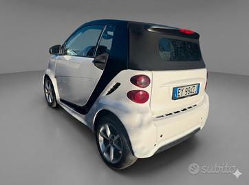 Ti presento una fantastica Smart ForTwo cabrio del 2008, perfetta per chi cerca un'auto compatta, elegante e divertente da guidare, soprattutto nei mesi più caldi grazie alla sua carrozzeria convertibile. Questa vettura a due posti, con tre porte, si distingue per il suo esterno bianco pastello, un colore raffinato e moderno, abbinato a un interno in tessuto nero che garantisce comfort e stile.
