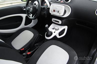 L'auto selezionata e periziata quest'oggi è una stupenda Smart Fortwo 1.0, alimentazione benzina,, 71CV, a trazione anteriore. UNICO PROPRIETARI è adatta ai NEOPATENTATI e si presenta in ottime condizioni sia di carrozzeria che di meccanica, TAGLIANDI UFFICIALI, ha l'allestimento Passion molto ricco che comprende: cambio manuale 5 marce, cruise control, limitatore di velocità, tetto panoramico, climatizzatore, autoradio , Bluetooth, Ingresso AUX/USB, Start&Stop, Fari LED, Alzacristalli elettrici, i cerchi in lega 15" , gomme 4stagioni al 80%.(PREZZO CON PERMUTA 10.300) Prot.3526