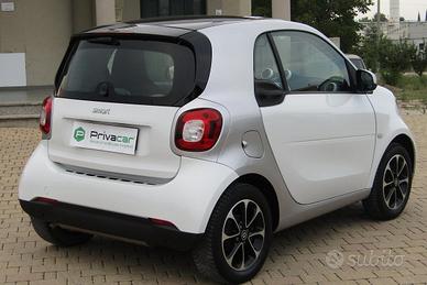 L'auto selezionata e periziata quest'oggi è una stupenda Smart Fortwo 1.0, alimentazione benzina,, 71CV, a trazione anteriore. UNICO PROPRIETARI è adatta ai NEOPATENTATI e si presenta in ottime condizioni sia di carrozzeria che di meccanica, TAGLIANDI UFFICIALI, ha l'allestimento Passion molto ricco che comprende: cambio manuale 5 marce, cruise control, limitatore di velocità, tetto panoramico, climatizzatore, autoradio , Bluetooth, Ingresso AUX/USB, Start&Stop, Fari LED, Alzacristalli elettrici, i cerchi in lega 15" , gomme 4stagioni al 80%.(PREZZO CON PERMUTA 10.300) Prot.3526