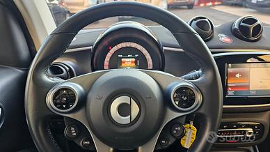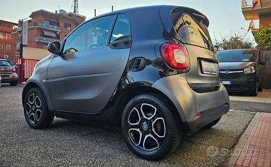 Smart Fortwo 70 1.0 Twinamic Passion con chilometraggio certificato (44.146 km immatricolata 11/2019) da tutti i tagliandi ufficiali disponibili su libro service digitale Smart, perfette condizioni. IVA ESPOSTA DEDUCIBILE GIA' COMPRESA NEL PREZZO. E' equipaggiata con i seguenti accessori: colorazione originale grigio scuro opaco con tridion specchi e mascherina anteriore neri, cambio automatico Twinamic a 6 rapporti con funzione Eco&Sport, pacchetto Led&Sensor con luci diurne anteriori Led a 'U' fendinebbia e fari posteriori a Led, pacchetto luci esterne, sensore pioggia/luci, cerchi in lega da 15 bicolore satinati/neri, volante in pelle multifunzione, cruise control e limitatore di velocità, specchi laterali regolabili elettricamente, vetri anteriori elettrici, pacchetto comfort con volante e sedile di guida regolabili in altezza, autoradio navigatore monitor touch screen Cool & Media con connettività completa smartphone bluetooth ingresso usb sd card aux e AndroidAuto, climatizzatore automatico, presa di corrente anteriore, bracciolo centrale anteriore originale, tetto panoramico con tendina oscurante, start&stop disinseribile, portaocchiali. Garanzia 12 mesi inclusa, passaggio di proprietà escluso.