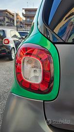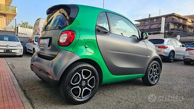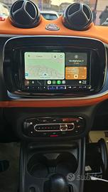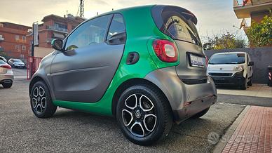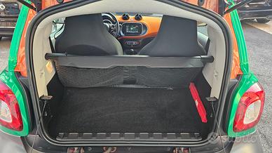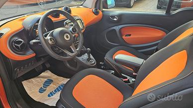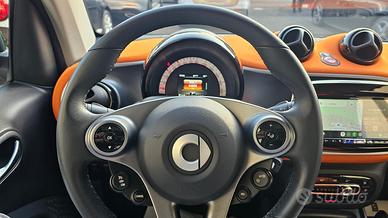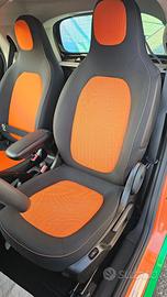 Smart Fortwo 90 0.9 TURBO Twinamic Passion con chilometraggio certificato (54.858 km immatricolata 08/2018) da tutti i tagliandi annuali disponibili su libro service digitale Smart, perfette condizioni. E' equipaggiata con i seguenti accessori: colorazione grigio scuro opaco con tridion wrappato verde (colorazione originale arancione metallizzato), sensori di parcheggio posteriori, cambio automatico Twinamic a 6 rapporti con funzione Eco&Sport, pacchetto Led&Sensor con luci diurne anteriori Led a 'U' fendinebbia e fari posteriori a Led, pacchetto luci esterne, sensore pioggia/luci, cerchi in lega da 15 bicolore satinati/neri gommati con pneumatici 4 stagioni, volante in pelle multifunzione, cruise control e limitatore di velocità, specchi laterali regolabili elettricamente, vetri anteriori elettrici, sedili riscaldabili bicolore nero/arancio con cuciture arancioni, cruscotto in tessuto arancio, autoradio DAB monitor touch screen Alpine con connettività completa smartphone bluetooth/wifi ingresso doppio usb e AndroidAuto/Apple Carplay, climatizzatore automatico, bracciolo centrale originale, presa di corrente anteriore, tetto panoramico con tendina oscurante, start&stop disinseribile, portaocchiali, fascia elastica contieni bagagli, tappetini in velluto originali, battitacco d'ingresso in alluminio. Garanzia 12 mesi inclusa, passaggio di proprietà escluso.