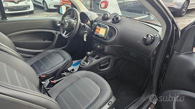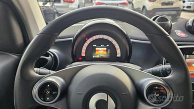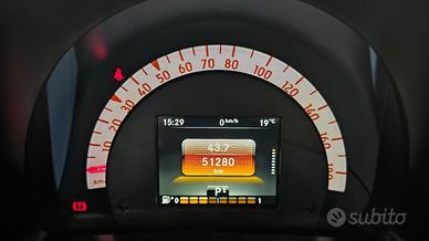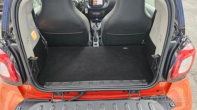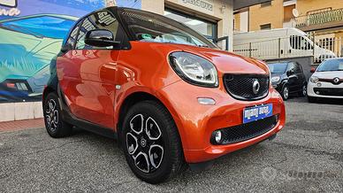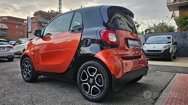 Smart Fortwo 90 0.9 Turbo Twinamic Prime con chilometraggio certificato (51.280 km immatricolata 11/2017) da tutti i tagliandi annuali Smart eseguiti e riscontrabili su libro service ufficiale, perfette condizioni. E' equipaggiata con i seguenti accessori: colorazione originale arancione metallizzato perla con tridion e specchi laterali e mascherina neri, cambio automatico e sequenziale a 6 rapporti doppia frizione Twinamic con funzione Eco e Sport, tetto panoramico con tendina oscurante, pacchetto Led&Sensor con luci diurne anteriori Led a 'U' fendinebbia e fari posteriori a Led, pacchetto luci esterne, sensore pioggia/luci, sedili in pelle totale neri con cuciture a contrasto bianche riscaldabili, cerchi in lega da 15 bicolore satinati/neri, volante in pelle multifunzione, cruise control e limitatore di velocità, specchi laterali regolabili elettricamente, vetri anteriori elettrici, pacchetto comfort con volante e sedile di guida regolabili in altezza, autoradio navigatore monitor touchscreen vivavoce Cool & Media con ingresso Usb Aux e connettività completa bluetooth, climatizzatore automatico, presa di corrente anteriore, start&stop disinseribile, portaocchiali, fascia elastica contieni bagagli, parafanghi originali Smart dietro i passaruota sia anteriori che posteriori. Garanzia 12 mesi inclusa, passaggio di proprietà escluso.
