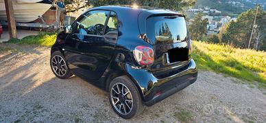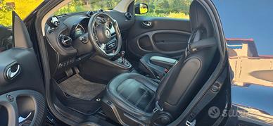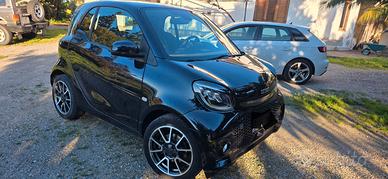 Vendo Smart EQ fortwo anno 2020 in allestimento Blu Paris con cerchio da 16" Brabus e 37.000km all'attivo. La macchina è sempre stata custodita in box privato ed è dotata di ricarica rapida a 22kw (si ricarica in circa 45 minuti dalle colonnine pubbliche, ovviamente è compreso il cavo di ricarica originale). Incluso anche il caricabatterie domestico che permette la ricarica da una qualunque presa domestica shuco. La vettura è full optional : navigatore, Bluetooth, Android auto ed Apple car play, sedili riscaldabili, pelle nera, clima automatico, sensore luci e pioggia, tetto panoramico in vetro, fari full led, retrocamera, cruise control etc etc.. gommata al 90% con 4 pneumatici Continental. È presente tutta la dotazione originale : manualistica e doppie chiavi. Vettura ancora in garanzia fino a settembre 2026. Disponibile a fornire anche lo stato d'uso della batteria al momento dell'acquisto, ad oggi al 94% della sua vita utile ed, in garanzia ufficiale Mercedes fino al 2028. Per qualsiasi ulteriore chiarimento non esitate a contattarmi. No perditempo o vorrei ma non posso!