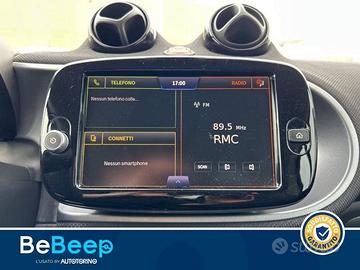 La vettura è completa nella dotazione optional di Portabevande anteriori, Box portaoggetti aperto e contenitore aggiuntivo, Rete vano piedi passeggero, Vano per occhiali guidatore e passeggero, Illuminazione ambient, Sedile guida regolabile in altezza, Volante in pelle, Volante fisso in altezza, Bracciolo centrale anteriore ripiegabile, Volante multifunzione riscaldabile, Copertura vano bagagli, Accesso a smart control 3 anni, Coperchio vano anteriore con serratura, Custodia per cavi di ricarica, Zero emissioni, Ganci portaoggetti, Strumentazione con orologio e contagiri, Documentazione in italiano, Modulo comunicazione 3G, Kit riparazione pneumatici, Sistema raffreddamento batteria, Caricatore 4,6 kW, Griglia radiatore in tinta carrozzeria, Interni tailor made, Climatizzatore automatico, Radio digitale, Smart Audio System, Smart Media System con JBL, Computer di bordo con display a colori, Servizi TomTom Live Traffic, DAB+ e standard digitali, Cambio automatico per veicolo elettrico, Cerchi in lega da 15" a 4 razze, Integrazione smartphone iOS e Android, Cavo