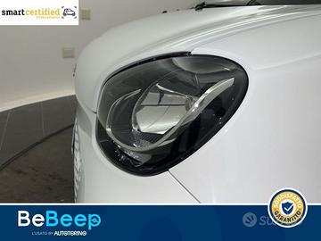 La vettura è completa nella dotazione optional di Accesso a smart control 3 anni dall'attivazione, Airbag ginocchia, Airbag lato guida e passeggero, Alzacristalli elettrici con azionamento comfort, Alzacristalli elettrico senza azionamento comfort, Box portaoggetti aperto, Brake Assist attivo, Caricatore batteria da 4,6 kW, Cavo di ricarica per presa domestica, Cavo di ricarica per wallbox, Cerchi in acciaio da 15" (38,1 cm), Cerchi in lega leggera da 38,1 cm (15"), Consolle centrale con cassetto e portabevande, Controllo della pressione pneumatici, Cool & Audio System: climatizzatore automatico, Coperchio vano di servizio anteriore con serratura, Copertura vano bagagli, Cruise Control, Esp Electronic Stability Program, Griglia del radiatore in body color, Indicatori con orologio sul cruscotto e contagiri, Italian user documentation, Luci diurne a LED, Model year 800, Modulo di comunicazione (3G), Pacchetto Cool & Audio, Plancia e pannello centrale black/white, Pneumatici estivi, Punti di aggancio del sedile bimbo ISOFIX, Retrovisori Esterni A Regolazione