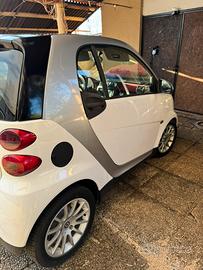 Smart fortwo bianca 451 con 71 CV (per neopatentati) 2008 benzina, tagliando fatto, revisione fatta, gomme davanti con 5 mila km, candele cambiate, cambio olio al cambio automatico fatto. Riverniciatura nera su tetto ed accessori. Allestimento HD. 167 mila km. Prezzo non trattabile