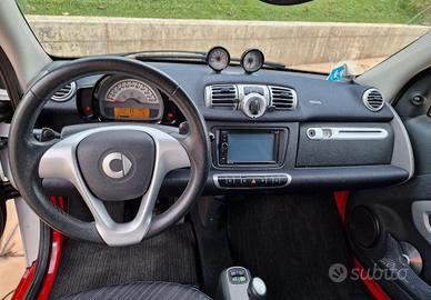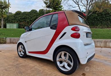 Vendesi Smart Fortwo 1.0cc 52KW 71cv 3 cilindri con cambio robotizzato (Twinamic) E5, seconda serie Cabrio, anno di immatricolazione: 09/2014. L'auto presenta 53.200km tutti percorsi in centro urbano, tagliandata annualmente e mantenuta in box da vero amatore. Vettura Full optional con allestimento interno ed esterno bicolore, Brabus Tailor Made MHD, trazione posteriore e gomme posteriori maggiorate. Contattare telefonicamente per qualsiasi informazione. Tommaso: 392 6095830