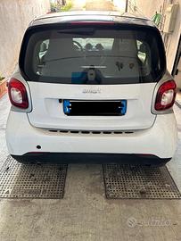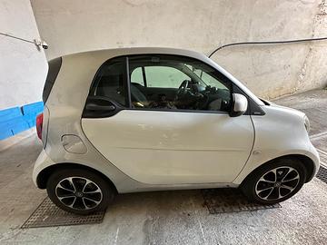 Vendo Smart Fortwo 1.0 benzina (52 kW / 71 CV), immatricolata a giugno 2017, secondo proprietario, mai incidentata e sempre tagliandata. Auto in buone condizioni generali, usata principalmente in città. Caratteristiche principali: 83.000 km Cambio automatico Luci diurne a LED Cerchi in lega da 15” Tettuccio panoramico Start&Stop Climatizzatore automatico Cruise control / Limitatore di velocità Volante in pelle con comandi multifunzione Radio Android con CarPlay e Android Auto Nota: L’auto presenta alcuni graffi di carrozzeria e segni di usura sui cerchi, dovuti al normale utilizzo urbano, senza danni strutturali o incidenti.