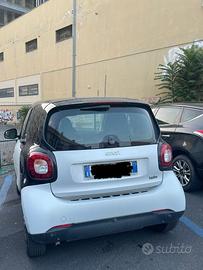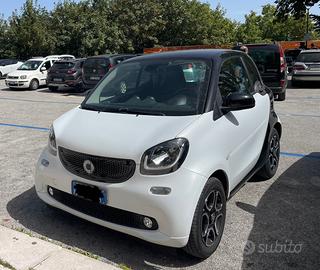 Vendo Smart Fortwo, 900 turbo benzina 90 cavalli, cambio manuale, anno 10/2016, allestimento Prime, con cerchi da 15 diamantati, colore bianca opaca, fari led anteriori e posteriori, sedili in pelle nera riscaldati , sensori anticollisione e sensori di parcheggio posteriori, tetto panoramico, block system antifurto meccanico elettronico, consumi in ciclo misto urbano ed extraurbano pari a 20 km/lt.