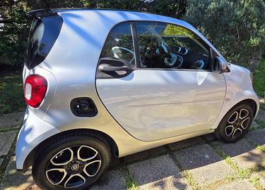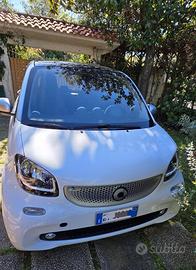Smart FOR-TWO Mod. 453 - benzina, Italiana, ultima serie con cambio manuale, 80.000 km certificati. Allestimento PrimeLine con cellula color TRIDION IN COOL SILVER METALLIC e colore bianco. Interni in pelle nera e sedili riscaldabili. Full Optional: 01R - CERCHI IN ALLUMINIO 15" 20U - TAPPEZZERIA PELLE 220 - SISTEMA PARKTRONIC (PTS) 238 - ASSISTENTE AL MANTENIMENTO DELLA CORSIA 240 - LUCI A LED 252 - SEGNALATORE COLLISIONE (FCW) 268 - ASSISTENTE FRENI 294 - AIRBAG GINOCCHIA 440 - TEMPOMAT/SPEEDTRONIC 4U4 - GRIGLIA DEL RADIATORE COOL SILVER 52U - RIVESTIMENTO INTERNO LIFESTYLE (NERO/BIANCO) 537 - SISTEMA AUDIO SMART R0-13 584 - ALZACR. 2 UNITA LATO ANT. EL. CON PROT. ANTINC. 723 - COPERTURA VANO BAGAGLI AVVOLGIBILE 840 - FINESTRATURA PANORAMICA TETTO LEGGERMENTE SFUMATA SMART 873 - RISCALDAMENTO SEDILE 927 - TRATTAMENTO GAS DI SCARICO TECNOLOGIA EURO 6 A03 - SMART LINE-UP B03 - SISTEMA DI ARRESTO E AVVIAMENTO B18 - SCOMPARTO PER OCCHIALE B51 - TIREFIT C67 - SUPPORTO SMARTPHONE E18 - LUNOTTO TERMICO E22 - TETTO IN CRISTALLO I01 - DISPOSITIVO AUTOMATICO CLIMATIZZAZIONE I09 - CASSETTO PORTAOGGETTI APERTO I16 - AIRBAG TORACE I18 - MANIGLIA DI APPIGLIO PER PASSEGGERO I39 - AIRBAG PASSEGGERO ANTERIORE I58 - AIRBAG FRONTALE (MONOSTADIO) J58 - CONSOLLE CENTRALE LINE UP J60 - INTERNI VANO PORTAOGGETTI SENZA COLORE K36 - STRUMENTO COMBINATO CON DISPLAY A COLORI P25 - PACCHETTO LUCI (FFO) P31 - PACCHETTO COOL & AUDIO R87 - CERCHI LEGA LEGGERA 15" DESIGN A 5 R. DOPPIE NERO S22 - ISO-FIX (SISTEMA DI FISSAGGIO SEGGIOLINO BAMBINI) S37 - SELLERIA IN PELLE NERA V07 - LUCI FENDINEBBIA V18 - CALOTTE RETROVISORI ESTERNI COLORE TRIDION V24 - COMANDI SISTEMA MULTIMEDIALE SU VOLANTE V31 - PACCHETTO OROLOGIO PLANCIA E CONTAGIRI/AMPEROMETRO V32 - COPERTURA DI MANUTENZIONE CON SERRATURA V33 - PROGRAMMA ELETTRONICO DI STABILITA (ESP) V41 - CONTROLLO PRESSIONE PNEUMATICI V54 - SENSORE PIOGGIA E LUCI...