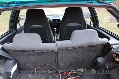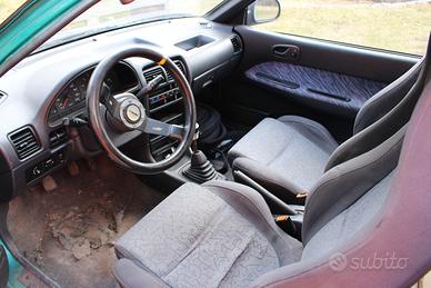 Attenzione. La macchina è di un mio amico, io mi sono solo occupato di fare le foto e inserire l'annuncio. Quindi per qualsiasi informazione dovete chiamare Simone al numero 3485425493 Subaru Justy 1.3 benzina del 1998. La vettura è un po' conciata di carrozzeria e moquette interna (andrebbero rifatti la fiancata destra e il paraurti anteriore), ma come meccanica funziona perfettamente. Il motore batteva in testa e il cambio grattava la terza marcia e sono stati sostituiti entrambi montando ovviamente una nuova frizione. Quelli smontati sono stati tenuti e vengono dati insieme alla macchina e ad altri pezzi che elencherò in seguito. Al momento sono montati i suoi cerchi in ferro con gomme chiodate, ma vengono forniti 4 cerchi in lega dove poter montare altre gomme. Quindi insieme alla macchina vengono forniti: - Motore e cambio vecchi - 4 cerchi in lega - Paraurti anteriore da verniciare - Fanali posteriori - Scarico originale - Volante originale Il prezzo è di 2900 euro trattabili L'auto si trova a Folgaria (TN)