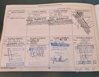SUBARU OUTBACK 2.0D LINEARTRONIC TREND Immatricolazione 06/2014 Diesel 2.0L 110KW/150CV Euro 5B Tagliandata Subaru Due precedenti proprietari Lievi segni di grandine tetto/cofano Chilometraggio attuale 125000 Cambio automatico/sequenziale Trazione integrale a gestione elettronica Selettori del cambio al volante Selleria in pelle Tetto in vetro apribile Chiave intelligente Display multifunzione a colori Connessione Bluetooth Fari Xenon Sensore pioggia e luci Telecamera posteriore Cruise control Clima automatico bi-zona Regolazione elettrica sedile guida Sedili anteriori riscaldabili Airbag anteriori e posteriori Sistema Isofix sedute posteriori Barre longitudinali sul tetto Cerchi in lega da 17’’ Pneumatici Michelin Cross Climate Disponibilitàmanuale uso e manutenzione Disponibilitàkit gonfiaggio Disponibilitàseconda chiave Certificatodi conformità 12 mesi Garanziaguasti estendibile fino a 5 anni Prezzo euro 11450 Passaggio di proprietà escluso FGAUTO Srls - Autosalone L'Aquila - SS80 N.15 - Tel –
