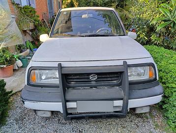 Suzuki Vitara 5 porte, 4 ruote motrici con ridotte, anno ottobre 1996, a benzina e con impianto GPL, Km. 330.754 - gancio traino, portapacchi, 4 gomme nuove, frizione nuova, motorino avviamento nuovo, freni nuovi. Probabile problema alla pompa acqua. Bollo valido fino a gennaio 2027. Revisione valida fino agosto 2027. Da ottobre 2026 diventa auto storica, con vantaggi sugli importi di bollo e assicurazione.