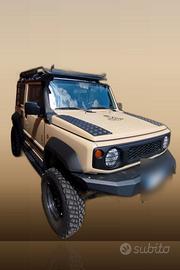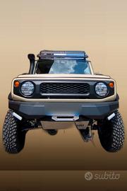Suzuki Jimny JB74 Adventure – Full Overland Build professionale by Officine Quadrifoglio/HM4X4. 17.500 km, immatricolazione 03/2023, benzina 1.5L, cambio manuale, 4WD. Oltre 60 modifiche aftermarket certificate. TELAIO: Lift kit +5cm, spacer 60mm, cardano rinforzato, 5 Kumho KOBRA AT, cerchi acciaio neri. PROTEZIONE: Paraurti anteriore/posteriore HM4X4, verricello Dragon Winch 5000lbs integrato, piastre sottoscocca (serbatoio, differenziale ant/post), snorkel, gancio traino 13-pin. ILLUMINAZIONE: Barra LED tetto 6500K, LED DRL+fendinebbia, 2 LED posteriori, pannello interruttori. ESTERNO: Portapacchi, struttura cage/scala, 2 scalette laterali, 2 scalette posteriori, minigonne, pedane, protezioni cofano, portaruota. ELETTRICO: Doppia batteria, pannello solare cofano 85W Lensun + pannello solare tetto, regolatore di carica, CB Radio, centralina rimappata, navigatore LCD, bussola e inclinometro. INTERNO: Isolamento termico, tappetini TPE, vasca baule, divisorio carico, bracciolo, copri-lunotto, copri-serrature inox, 10 D-ring, tappi anti-sabbia, protezione portellone. KIT EXPEDITION: Kit primo soccorso MOLLE, compressore+avviatore, portatanica, taniche, serbatoio acqua 50L, tanica olio 6L, borsa portapacchi, estintore 2kg, portabici, gancio traino estraibile, catene da neve. Prezzo: €44.900 lievemente trattabili.