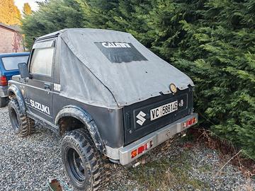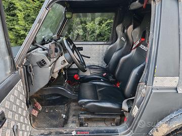 Suzuki samurai sj413 preparato, cerchi raptor, gomme maggiorate, sedili Raptor, rinforzi roll-bar interni, blocchi differenziali ARB, cambio con ridotte, balestre rialzate,motore rifatto 1 anno fa, servosterzo, fari e stop a led, barra led anteriore, disponibile ancora 1 altro rivestimento morbido più largo, archi passaruota e cerchi originali (senza gomme)
