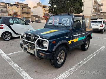 Vendo o permuto con altro fuoristrada. Suzuki samurai 1.3 cc anno 1986, meccanica revisionata ed ottima, 4x4 perfettamente funzionante, normali segni di usura, interni originali in ottime condizioni, gomme perfette, gancio traino omologato, verricello con comando interno, stacca batteria a chiave, capotte in vinile in ottime condizioni, qualsiasi prova, passaggio di proprietà e assicurazione ridotti. Valuto permute con veicoli fuoristrada o auto d'epoca di mio gradimento. Prezzo leggermente trattabile.