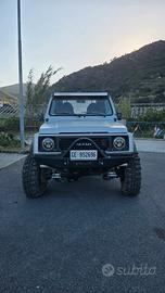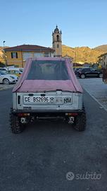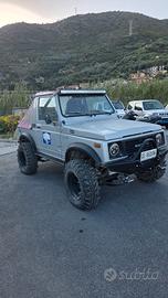 suzuki samurai sj413 ponti larghi *sono disponibile perchiamate o whatsapp 3466286433* cappottina rosa sedili smart volante replica nardi in legno monta carburatore 32/38 doppio corpo derivazione 112 abarth assetto +10 raptor trial con biscottini dinamici HM anti e dinamici raptor post riduttore con super ridotte paraponti ant e post distanziali +5 gomme extreme 215/70 r15 rimarchiate 195/80 r15 (gomma post sinistra perde pressione) cerchi raptor scampanati paraurti ant post uso gravoso STC con piastra verricello ant fari a led ant e post trombe cucaracha barra led 104cm tubi freni allungati HM finale scarico tubo dritto insieme posso dare 5 cerchi con gomme stradali, scarico originale e altro