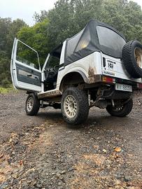 Vendo suzuki sj410, monta kit rialzo +10, distanziali da 3cm, cerchi in lega, paraurti uso gravoso, e altri accessori, sotto scocca perfetto senza alcun punto di rugine, il matore è stato completamente rifatto tutto fatturato, ma presenta un problema al primo cilindro, o difetto bronzina o fascia incollata.. cambio, riduttore ponti perfetti. Vendo per passaggio ad altro veicolo.