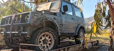 vendo come da foto scocca Suzuki Santana del 99 senza portiere e portellone euro 500. 5 cerchi con gomme euro 150. ponti anteriore e posteriore euro 250 ciascuno. trasmissione completa euro 200. riduttore euro 250. tutta in blocco Euro 800. se interessati chiamare al 3917525719 no perditempo grazie