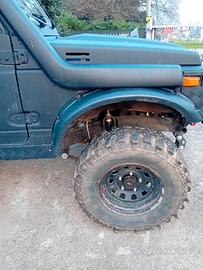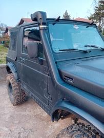 SUZUKI SAMURAI 1.4 swap 1.6 benzina.Kit 4x 4 offroad.Balestre e amortizzatori cambiati.Cerchi da 27.Gomme tassellate.Idroguida.Cambio appena revisionato con lavori a fattura.Tettuccio impermeabile apribile.Faro a LED anteriore attivabile da pulsantiera.Vernice raptor nera antigraffio.Parafango e paraurti ad uso gravoso..Possibile vedere l'auto.NO PERDITEMPO o proposte ridicole