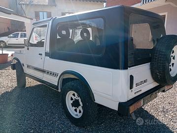 Suzuki SJ 413 passo lungo giapponese telaio Jsa una delle pochissime rimaste 4x4 con ridotte inseribili mozzi ruota libera appena restaurato perfetto in tutto cinghia distribuzione, tagliando e revisione appena fatte da prendere e godersela 4 posti a libretto hard top rimovibile per godersi il cabrio auto trentennale passaggio agevolato,non paga bollo e assicurazione a 150€ l'anno dimostrabile possibile iscrizione ASI con libertà di circolazione ovunque mezzo di sicura rivalutazione per ricerca sj samurai fuoristrada 4x4