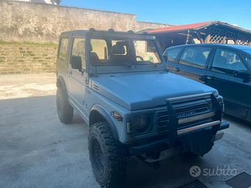 Suzuki SJ410 cabrio versione spagnola con motore 1.3 benzina -gpl rinnovato per altri 10 anni .Gancio traino e Kit rialzo +distanziali .insieme vendo 2 vetri anteriori nuovi e sedili posteriori compresi di cintura di sicurezza completa .qualche lavoretto da fare dovuto all eta’ ma Buono stato €7.900 tratt.
