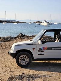 Vendo splendida Suzuki Vitara JLX Cabrio. Benzina, Motore 1.6L, 8 valvole ad iniezione. Anno 1990, perfette condizioni, tutto funzionante. Appena fatto tagliando con cambio olio motore, diffenziale e cambio. Appena sostituiti freni posteriori (ganasce nuove, cavi freno a mano nuovi). Sostituita crociera albero di trasmissione. Montata piastra para motore. Distanziali +3 cm. Prezzo leggermente trattabile.
