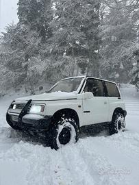 Vendo Suzuki vitara 1.6 8V, la macchina monta rialzo radzikone 7.5cm montato da poco, scarico completo (tranne collettori) cerchi scampanati, gomme nuove 235/75/15 con nemmeno 100km nemmeno un filo di ruggine, interni nuovi, macchina di serie con un piccolo bloccaggio (limited slip diff)