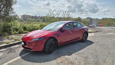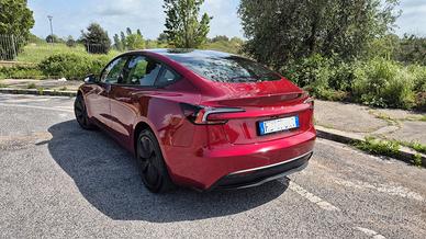 Vendo Tesla Model 3 Long Range ( LR ) RWD in condizioni pari al nuovo, immatricolata 21/11/2025 quindi 5 mesi di vita, 11'000 km. Auto perfetta, sempre garage, sedili posteriori mai utilizzati; guidata prevalentemente su percorsi autostradali. Nessun incidente, non fumatore, unico proprietario. Autonomia WLTP 702 km, tra le più elevate della categoria. Consumi effettivi registrati 130 Wh/Km. Configurazione in vendita : - colore Ultra Red (2'000€) - gancio traino a scomparsa originale Tesla (1'350€) - set pneumatici invernali premium Bridgestone Blizzak 6 XL Enliten (800€) Il modello equivalente dopo il cambio di nomi di inizio anno è Long Range RWD Premium che con questi optional ha un costo di 48'200€; metto in vendita al prezzo di 42'000€, leggermente trattabile dopo visione. Disponibile da subito per passaggio ad auto aziendale. Massima serietà, astenersi perditempo, affaristi e sognatori. Volendo possiamo organizzare consegna fuori Roma previo accordo sui costi di viaggio. ********* ULTERIORI DETTAGLI Motore elettrico Long Range RWD Autonomia WLTP 702 km Ricarica rapida Supercharger fino a 250kW Vernice premium Ultra Red Cerchi originali Tesla Gancio traino originale Tesla Interni premium Display centrale 15” Telecamere 360° Climatizzazione automatica Autopilot base Frenata automatica emergenza Cruise control adattivo Mantenimento corsia Pneumatici invernali inclusi utilizzati una sola stagione e coperti da polizza assicurativa fino a dicembre 2026 (sostituzione in caso di danno accidentale); attualmente stoccati gratuitamente presso installatore a Roma. Possibilità di ritiro oppure trasferimento accordo di deposito