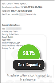 Vendo splendida Tesla Model 3 Performance rossa, immatricolata il 19/03/2020, con 82.500 km. Auto affascinante, potente e sempre attuale, perfetta per chi desidera entrare nel mondo Tesla con una versione sportiva e completa. La vettura si presenta molto bene sia esteticamente sia internamente, con abitacolo curato, grande display centrale e guida estremamente piacevole. Colore rosso molto bello, che valorizza ancora di più la linea della Model 3. Caratteristiche principali: Tesla Model 3 Performance Anno 2020 82.500 km Colore rosso 100% elettrica Supercharger Tesla attivi e aggiornamenti software inclusi Specifiche Autopilot Freni Performance Interni Nero totale Premium Rosso Micalizzato (PPMR) Cerchi Performance grigi da 20“ Spoiler in fibra di carbonio Long Range a trazione integrale Performance Pedali Performance Accesso alla rete Supercharger e pagamento Garanzia limitata sulla batteria Scade in data 25 marzo 2028 o dopo 192.000 chilometri totali, a seconda dell'evento che si verifica per primo Garanzia limitata sull'unità motrice Scade in data 25 marzo 2028 o dopo 192.000 chilometri totali, a seconda dell'evento che si verifica per primo Disponibile per visione e prova da concordare. Contattami solo se realmente interessati, grazie