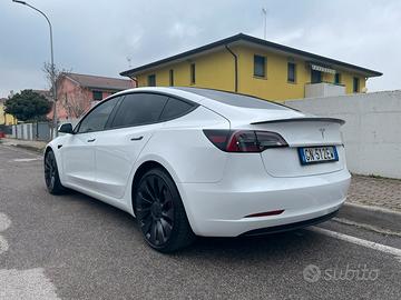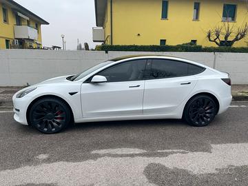 Tesla model 3 performance unico proprietario, con svariati accessori: vetri oscurati omologati, 2 porta oggetti nel tunnel centrale, 2 tappeti in gomma nel vano bagagli, 1 nel vano anteriore, treno di gomme invernali ed estive, para schizzi anteriori e posteriori.