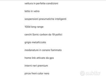 TSA GROUP AUTOMOTIVE . VI PROPONE TESLA ELETTRICA 215 CV . FULL OPTIONAL. NAVI . PELLE TOTALE . TETTO PANORAMICO . GOMMATA BENE . X INFORMAZIONI DETTAGLIATE DISPONIBILITÀ E VISIONE GRADITO APPUNTAMENTO CONTATTARE ORARI UFFICI . O LASCIARE VS RECAPITO TELEFONICO O E-MAIL SARETE RICONTATTATI DA NS STAFF COMMERCIALE . VISITA NS SHOP PARCO AUTO .