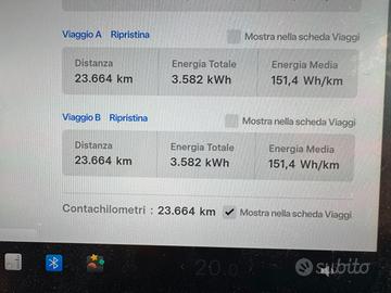 Capacità Batteria 100%, caricata al SuperCharger solo una volta, media di 151,4Wh/km da quando l'ho ritirata.