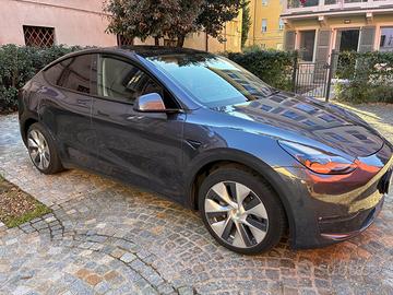 Tesla Model Y Long Range AWD immatricolata settembre 2022, unico proprietario. Auto in ottime condizioni, mai fumatori, mai incidentata e sempre parcheggiata in posto auto privato. Colore grigio metallizzato con interni neri, cerchi 19” Gemini con pneumatici 4 stagioni. Dotata di Autopilot Tesla, trazione integrale Dual Motor e autonomia WLTP fino a circa 533 km. Garanzia Tesla veicolo fino a settembre 2026 e batteria fino a 2028 / 192.000 km.