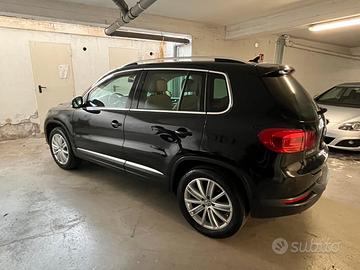 Vendo come da titolo splendida Tiguan con motore 2.0 tdi 170 cv 4x4 cambio manuale con 142000 km originali in buone condizioni generali, manutenzione puntuale e precisa, interni in pelle, tettuccio panoramico, clima bizona con bocchette posteriori, presa elettrica da 220v posteriore, navigatore, gomme nexen 4 stagioni all’80%, sensori di parcheggio anteriori e posteriori, park assist, hill holder. Bollo pagato fino a maggio 2026. L’auto é tenuta bene, i difetti di carrozzeria presenti rispecchiano un’auto comunque di 13 anni, per maggiori info sono disponibile tramite chat su subito o whatsapp. Prezzo poco trattabile dopo visione.