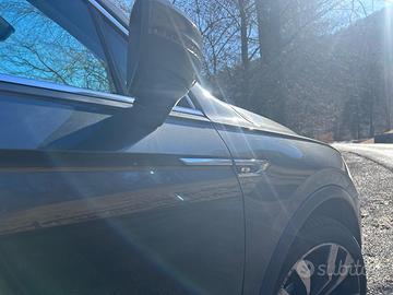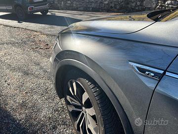 Internamente i sedili misto alcantara-tessuto con rivestimento del cielo nero, R-line anche internamente, cambio automatico 7 rapporti DSG, 4 ruote motrici, drive profile selection,hill holder, sensori parcheggio + telecamera,sensore pioggia, cruise control adattivo, mantenimento di corsia automatico, Traffic jam assist.