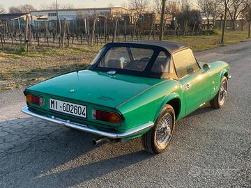 Triumph Spitfire 1500 del 1975 colore molto raro originale come indicato da codice sulla targhetta dell'auto “Java Green” L'auto si presenta in ottime condizioni con diversi optional di pregio come 5 cerchi a raggi cromati praticamente nuovi e ben gommati, più gli originali. Plancia cruscotto in legno laccato lucido Specchietti cromati copri capote L'auto è stata interamente restaurata qualche anno fa come carrozzeria, interni, meccanica e motore poi rimasta inutilizzata. Tappezzeria perfetta nera in pelle come tutta la moquette e la capottina anche essa in perfette condizioni. Fondi e carrozzeria non presentano alcun tipo di ruggine e non è stato applicato ancora alcun tipo di antirombo. Meccanicamente è appena stata eseguita manutenzione per la rimessa in strada, è tagliandata e verrà consegnata revisionata. Per info, foto e trattative in privato. Riccardo RD motor garage