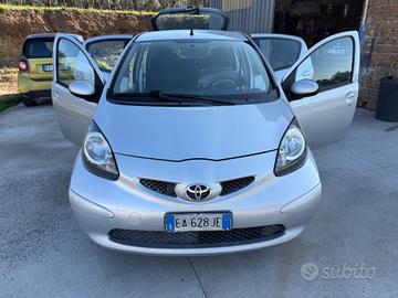 VENDO TOYOTA AYGO 5 PORTE APR. 2008 1.0 BENZINA 135000 KM ORIGINALI, COLORE ARGENTO, NO FUMATORE, DOPPIE CHIAVI KM ORIGINALI, BLUETHOOTH. VENDO AUTO IN BUONO STATO TUTTO FUNZIONANTE, I KM SONO CERTIFICATI, INTERNI OTTIMI, GOMMATA AL 95% TAGLIANDATA, MECCANICA PERFETTA, CARROZZERIA ORIGINALE CON PICOLI SEGNI DA PARCHEGGIO ACCESSORI: ARIA CONDIZIONATA, ANTIFURTO, AUTORADIO, 5 PORTE, ABS, BLUETHOOTH, CHIUSURA CENTRALIZZATA, EC A QUESTO PREZZO NON E COMPRESO IL PASSAGGIO MA POSSO GARANTIRE TAGLIANDO E REVISIONE NO EMAIL NO SMS SOLO CONTATTI TELEFONICI AL