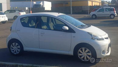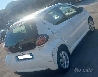 Vendo Toyota Aygo 2013 Active Connect cambio automatico + palette al volante 5 porte. Secondo proprietario, alcuni danni presenti nei paraurti anteriori e posteriori e da sistemare guarnizione tetto con leggera infiltrazioni di acqua che ha inumidito sedili posteriori (vedere foto). Sostituiti pneumatici pochi mesi fà e ricarica gas clima effettuata a luglio 2025. Nessun problema di meccanica, tutto in regola con revisioni e bollo. Possibilità di vederla e provarla zona san Lazzaro di Savena (Bologna), la vendo per passaggio a modello superiore.